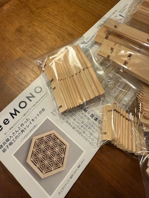 組子細工 フェリシモの組子細工のキット2個目3種類あったのに、2種類注文した後で廃盤になってしまった…人気なかったのか、職人さんの都合なのか…作ってるのは富山の建具屋さんだったよ。組子の窓枠とかサイコーに好きなんだよな〜今から作るよ!